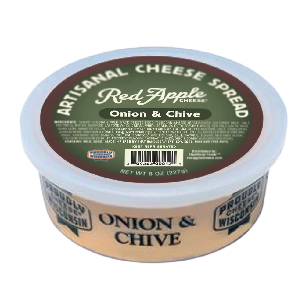 The fresh flavor of onion and chives is the perfect pairing for savory, rich cheddar in this original artisan cheese spread, made in our Almena, Wisconsin facility with fresh onions, chives and locally made cheese.